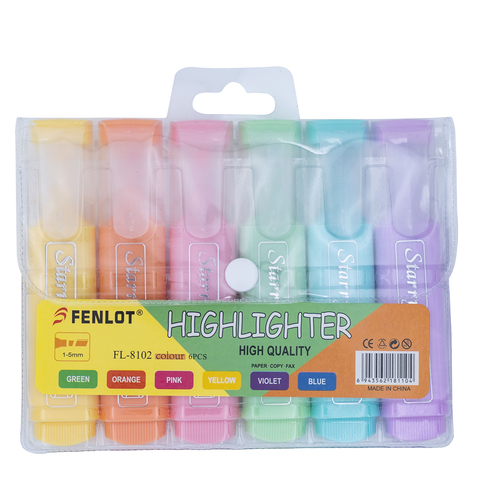 RTS OEM/ODM Aceptable Juego de rotuladores Resaltadores de 6 piezas con punta de pincel plana Clip de tamaño normal de color pastel suministrado en bolsas de PVC